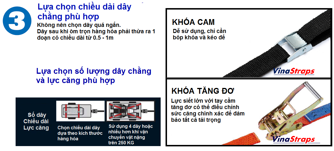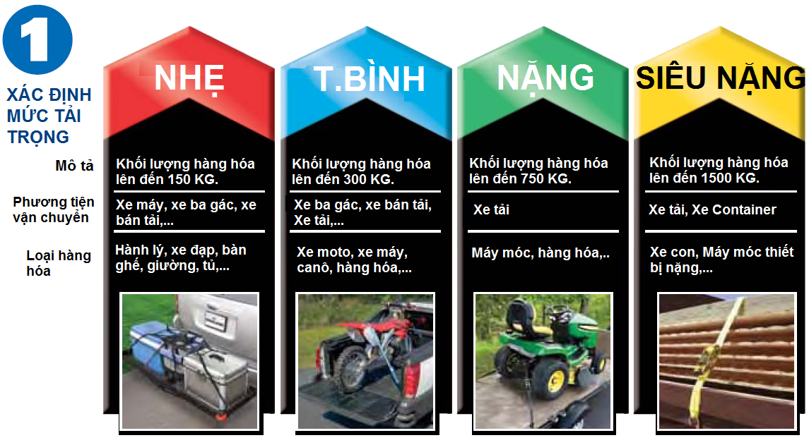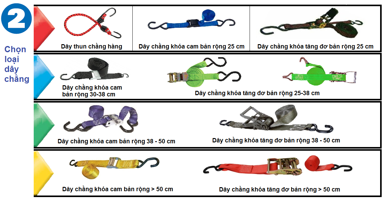 Dựa theo mức tải của hàng hóa và loại phương tiện vận chuyển để chọn loại DÂY TĂNG ĐƠ CHẰNG HÀNG phù hợp nhất.