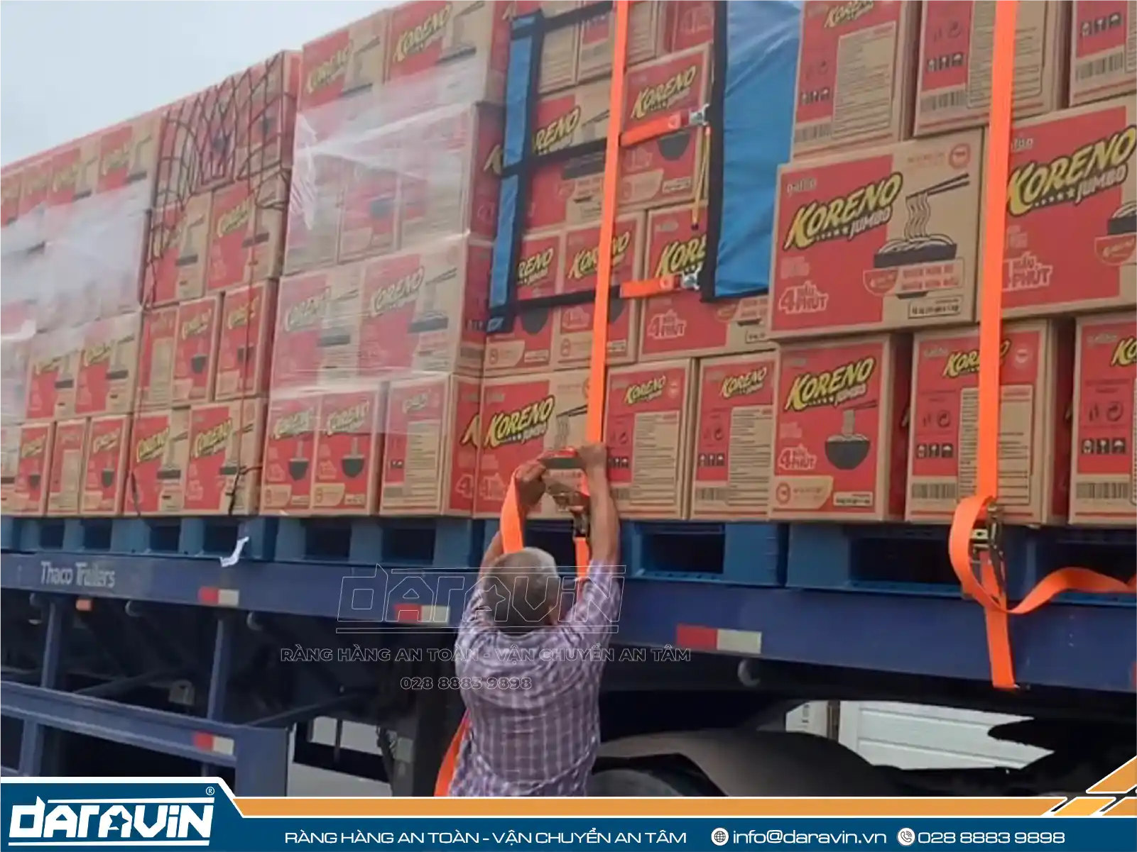 Với hàng hóa tải trọng nặng, người ta áp dụng nhiều kỹ thuật chằng hàng khác nhau để đảm bảo an toàn