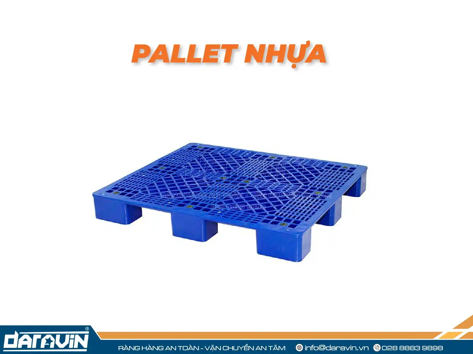 Nếu bạn đang tìm kiếm một đơn vị cung cấp pallet uy tín, chất lượng cao và có mức giá hợp lý thì hãy liên hệ ngay đến công ty Daravin để được tư vấn trực tiếp. Với 8 năm tuổi nghề, thương hiệu chúng tôi luôn cam kết mang đến cho khách hàng những sản phẩm tốt nhất. Cùng với đó là chính sách bảo hành, đổi trả minh bạch, rõ ràng để người mua nắm bắt. Ngoài ra chúng tôi cũng cung cấp các giải pháp lưới quấn pallet thay thế màng PE bọc hàng giúp tiết kiệm chi phí cho doanh nghiệp.