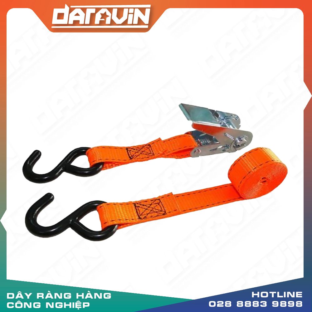 Dây chằng tăng đơ móc S bản 25mm có móc giúp chằng buộc hàng hóa cố định trên mui xe du lịch