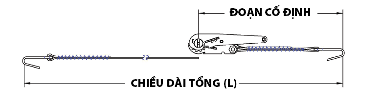 - Đoạn cố định: Tăng đơ, Dây đai bản rộng 25mm, Móc chữ S