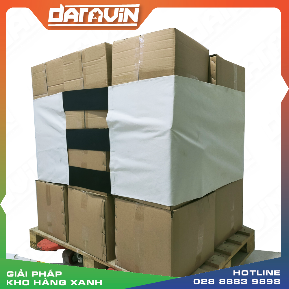 - Tiết kiệm chi phí dài hạn: Màng PE truyền thống quấn hàng pallet chỉ sử dụng được 1 lân, khi xuất hàng đi thì ta không sử dụng lại được. Với giải pháp Kho Hàng Xanh của DARAVIN có thể tái sự dụng lại nhiều lần giúp doanh nghiệp tiết kiệm chi phí mua màng PE hàng tháng, tiết kiệm chi phí điện năng cho máy quấn PE, tiết kiệm chi phí cho bên môi trường thu gom và xử lý rác thải nhựa từ PE.